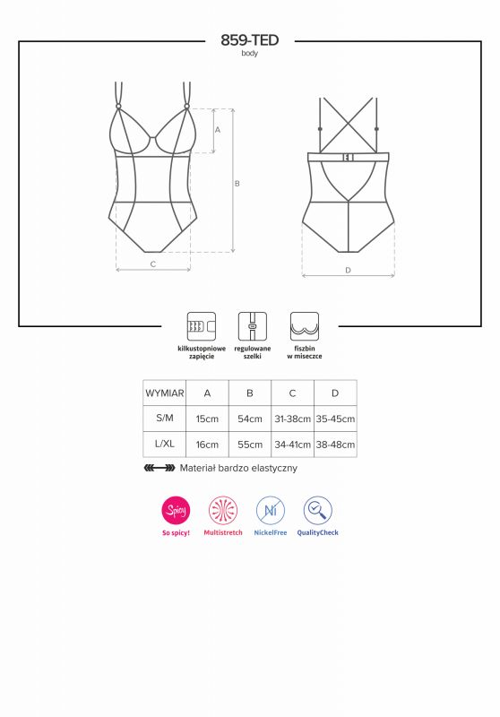 Obsessive 859-TED-1 Боди на двойных бретельках черный
