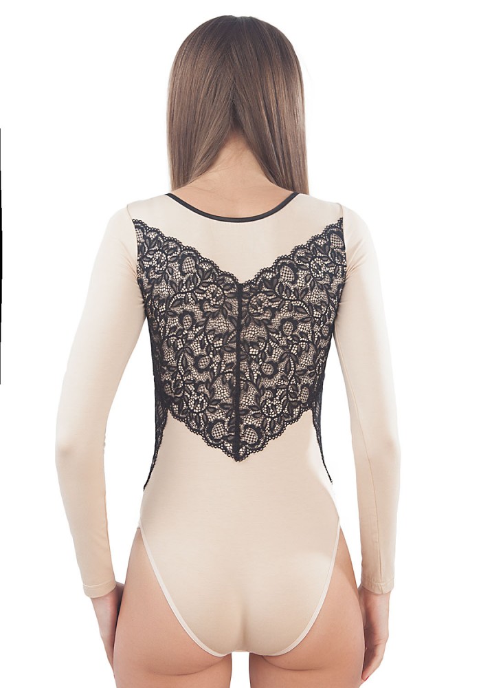 BB 124 Боди с кружевом бежевый