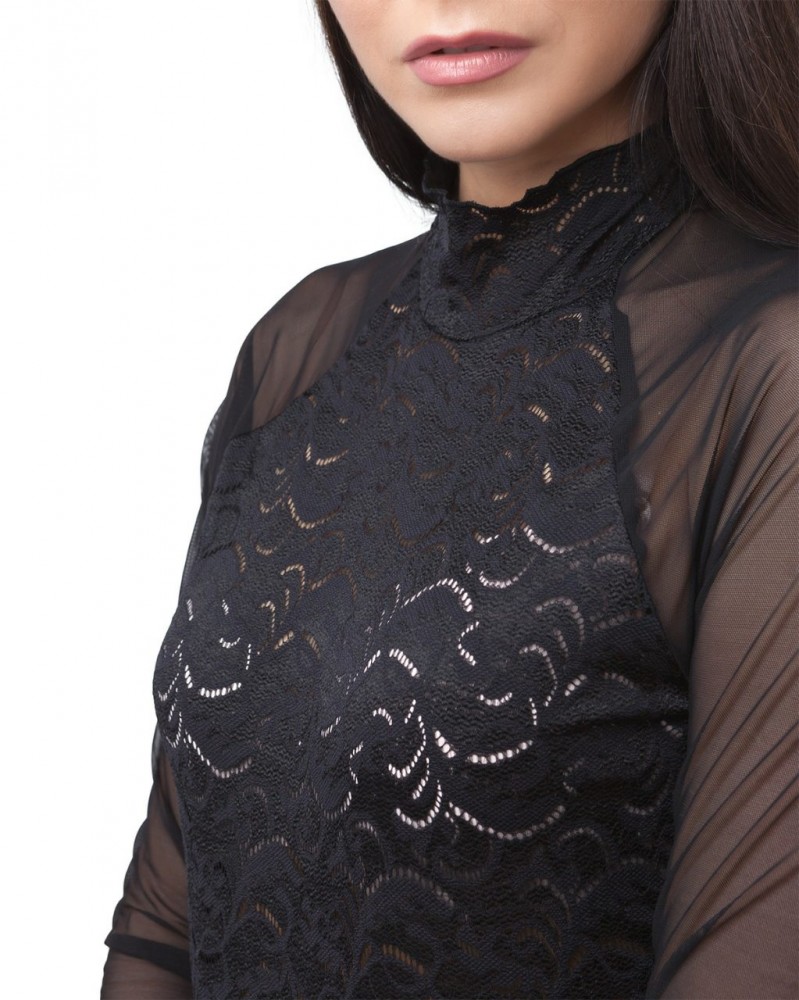 BB 147 Боди с прозрачными рукавами черный