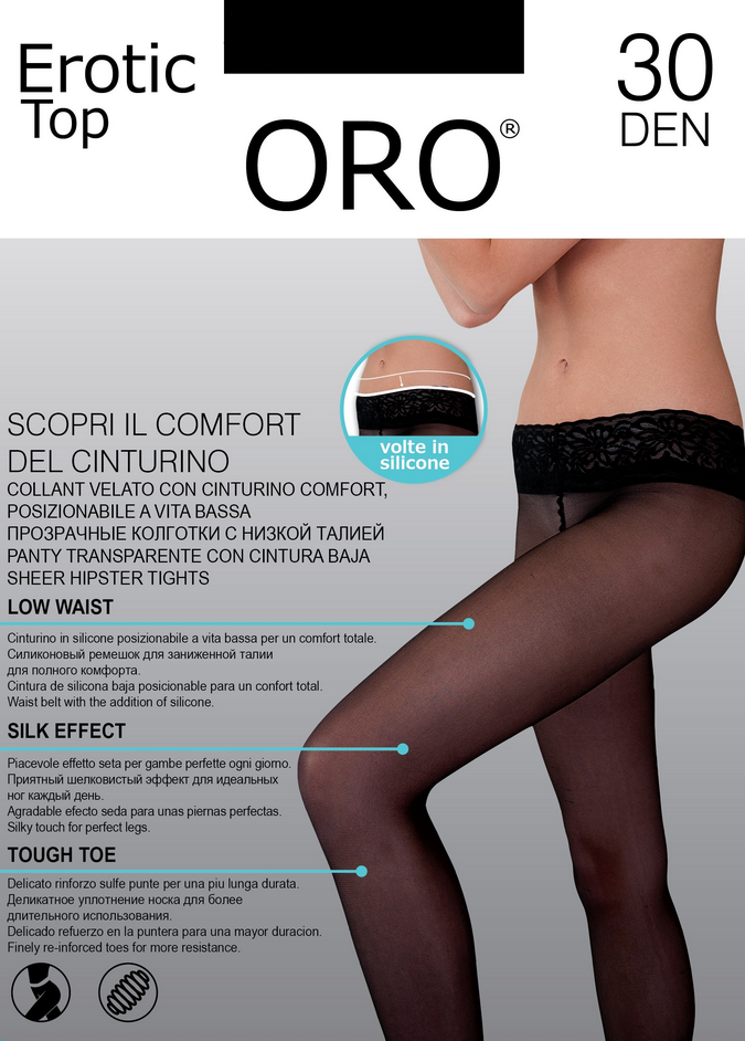 Oro Erotic Top 30 den колготки с заниженной талией и кружевным поясом черный