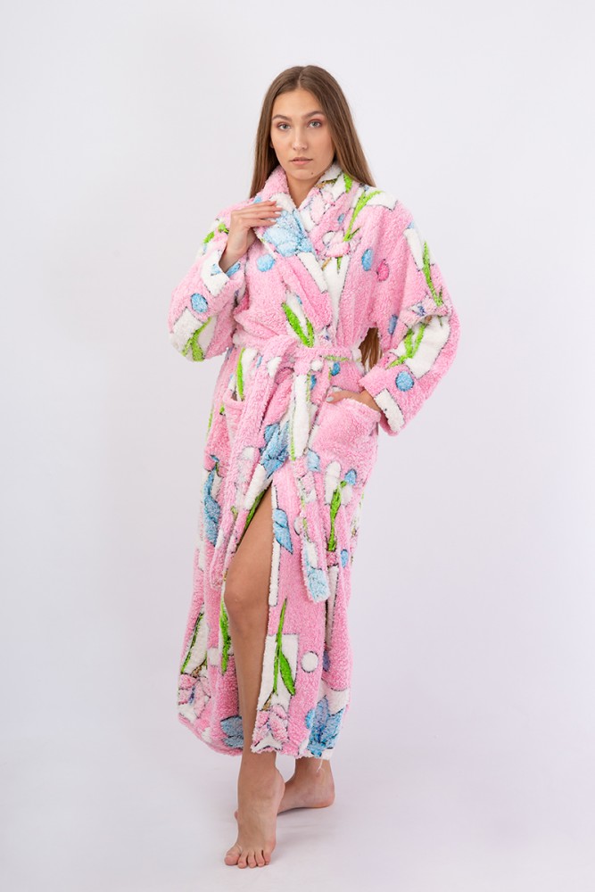 Vienetta Secret VS 031 Домашний теплый халат розовый/принт