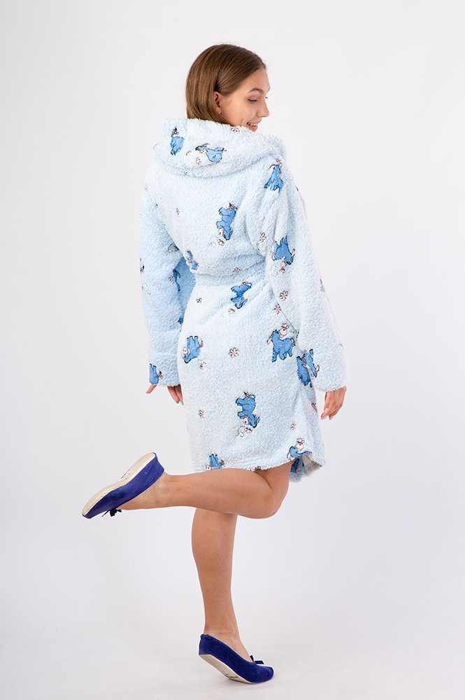 Vienetta Secret VS 032 Махровый женский халат с капюшоном голубой/принт