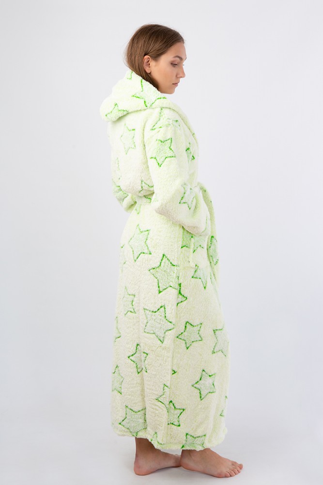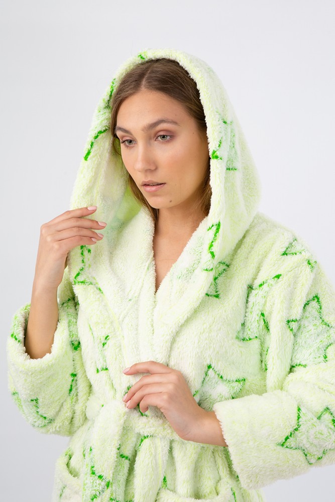 Vienetta Secret VS 033 Женский халат с капюшоном салатовый/принт