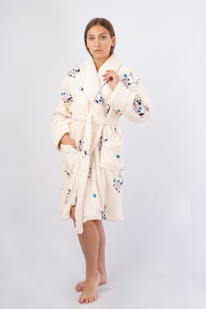 Vienetta Secret VS 034 махровый женский халат молочный/принт