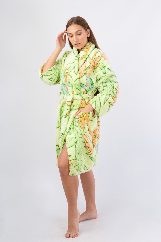 Vienetta Secret VS 034 махровый женский халат салатовый/оранжевый/принт