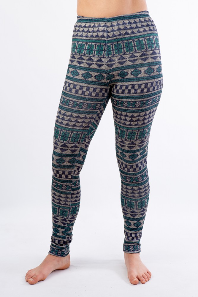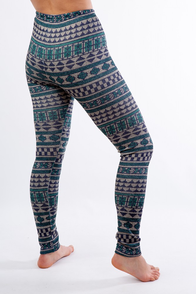LL 030 теплые лосины с орнаментом синий/зеленый