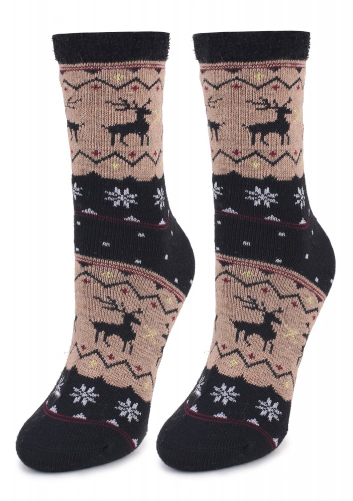 Marilyn ANGORA N32 Теплые носки с оленями черный/бежевый