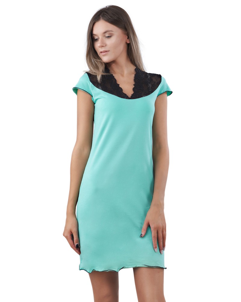 NL 045 Ночная хлопковая рубашка бирюзовый