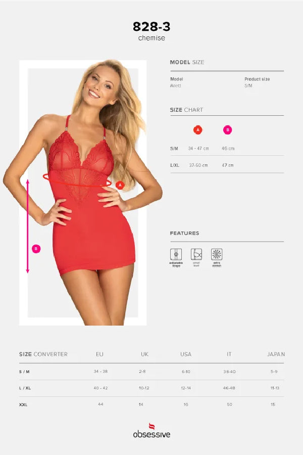 Красная сорочка Obsessive 828-CHE-3