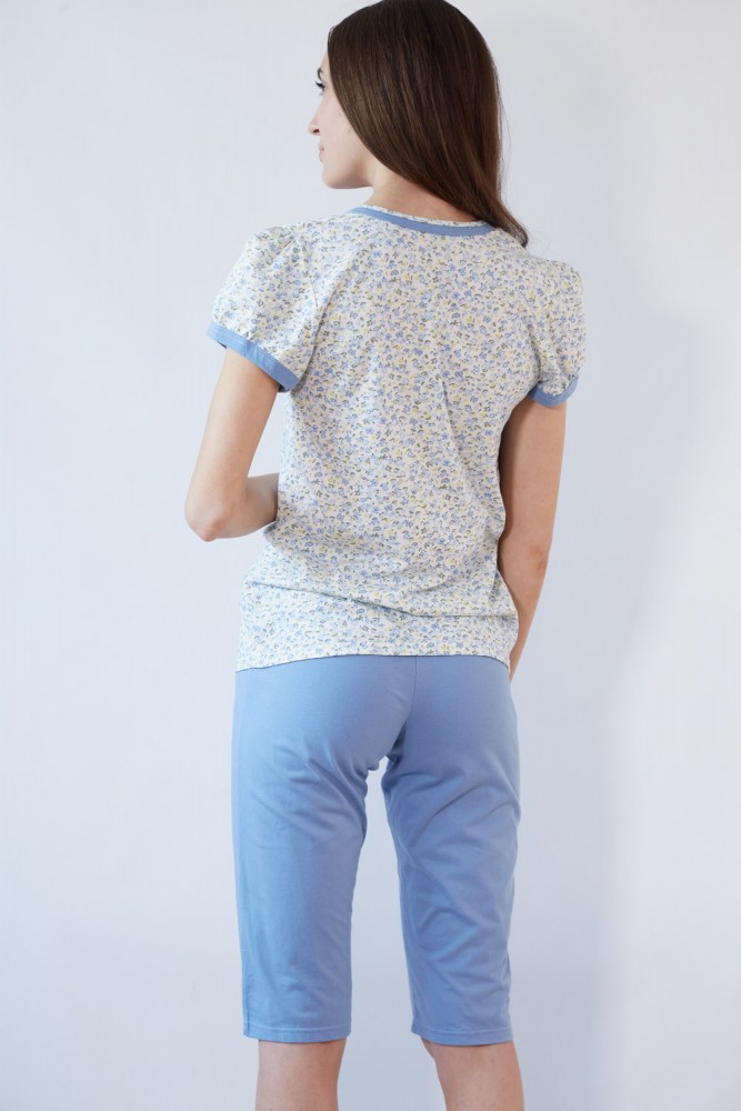 Black Tulip 18 Пижама женская с бриджами молочный/голубой