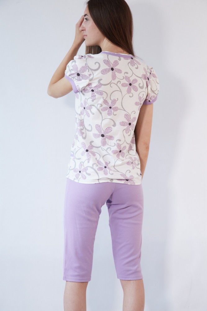 Black Tulip 18 Пижама женская с бриджами молочный/сиреневый