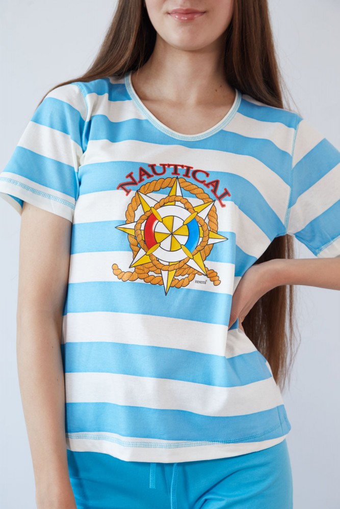Vienetta Secret VS 21 Пижама футболка/бриджи голубой/полоска