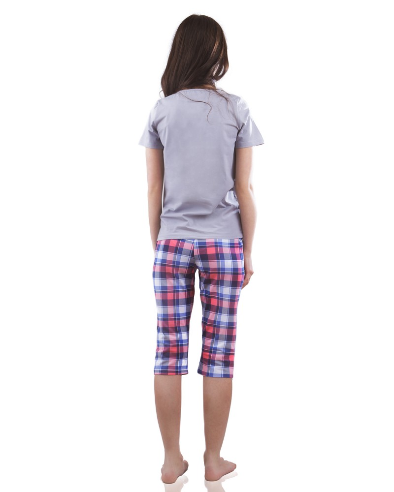 VPL 036 Женская пижама клетка серый/принт