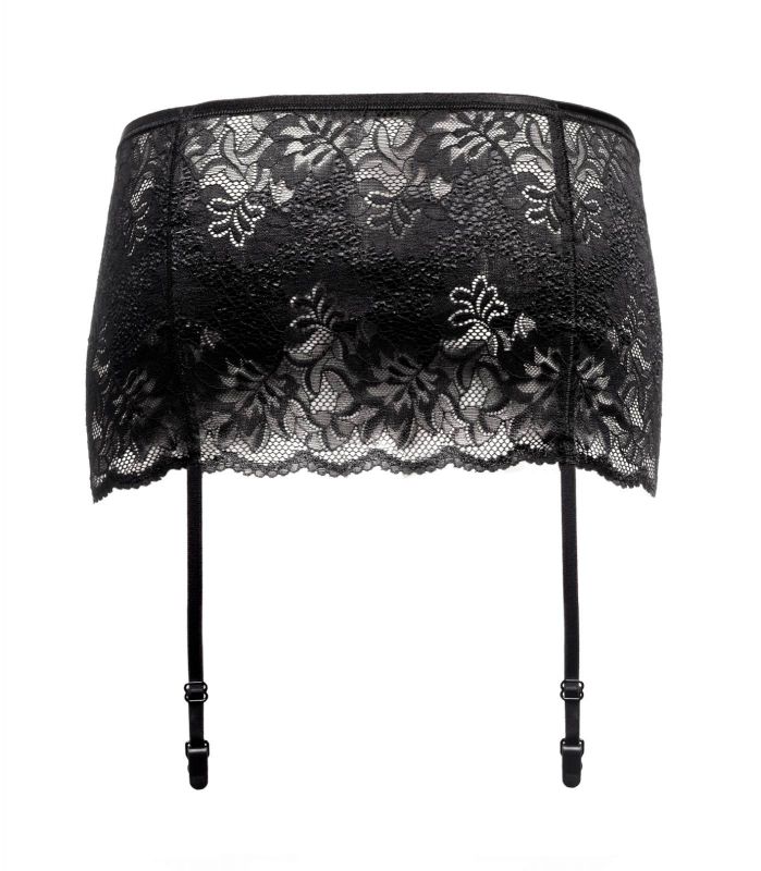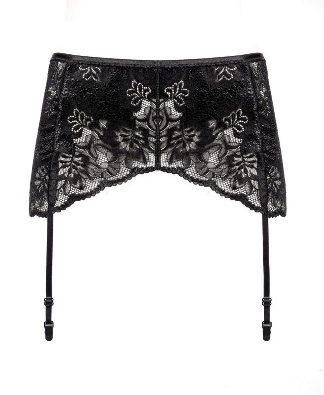 Элегантный черный широкий пояс для чулок Oro 403. Выполнен из красивого кружева. Без застежек. Тонкие регулируемые ремешки.