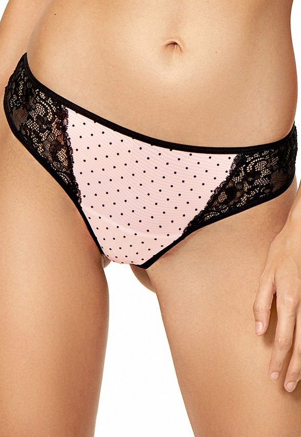 Kinga DOTS S 650/1 Трусы-стринги женские черный/розовый/горошек