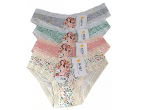 Женские трусы из модала DC Girl 26500. Классическая форма бикини. Материал с краисвым цветочным принтом. Верхний и нижние края обшиты кружевной тесьмой.