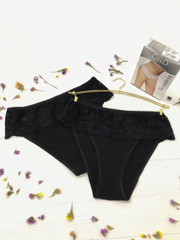 Oro Beatricia хлопковые трусы с кружевным поясом черный