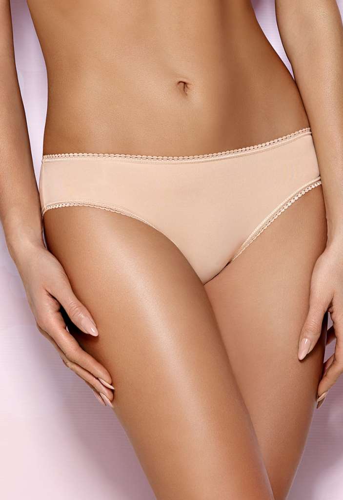 Классические женские трусы бикини VF-212/220/290 от польского бренда Vena. Модель бежевого цвета. Выполнены полностью из гладкого полотна. По верхнему и нижним краям оборка. Идеально подходят под гладкий бежевый бюстгальтер.