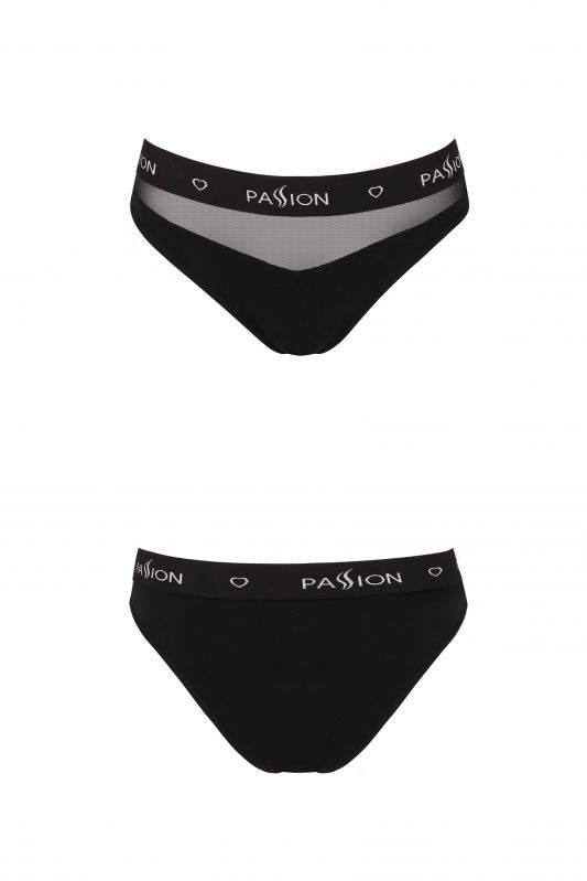 Черные спортивные трусы женские Passion PS006. Выполнены из высококачественного хлопка. Модель с удобной средней посадкой и классической формы. Спереди элегантная прозрачная вставка в форме треугольника. Широкая резинка с логотипом бренда.