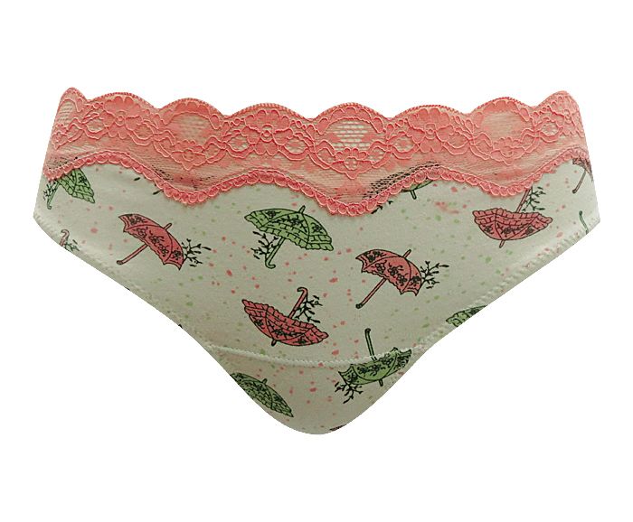 Очаровательные стринги от украинского бренда Sealine 221-1596. Выполнены из хлопка с принтом в виде зонтиков. Верхний край отделан кружевом.