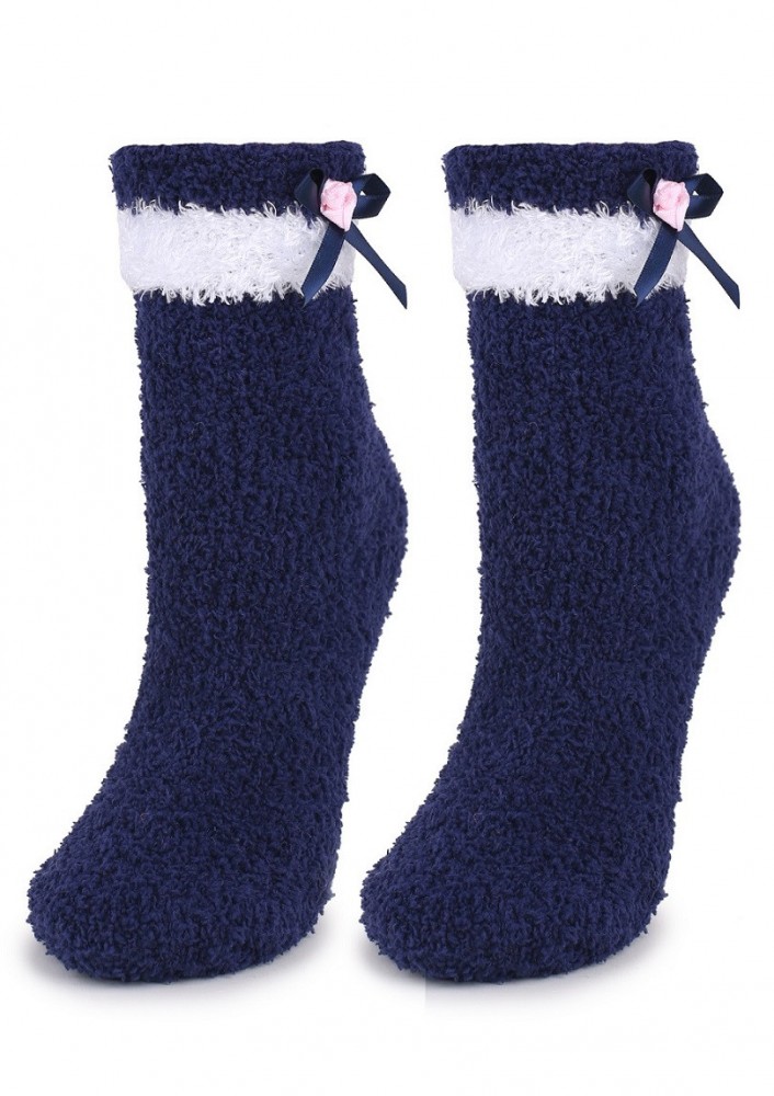 Marilyn COOZY N58 Махрові шкарпетки з білою облямівкою та бантиком синій