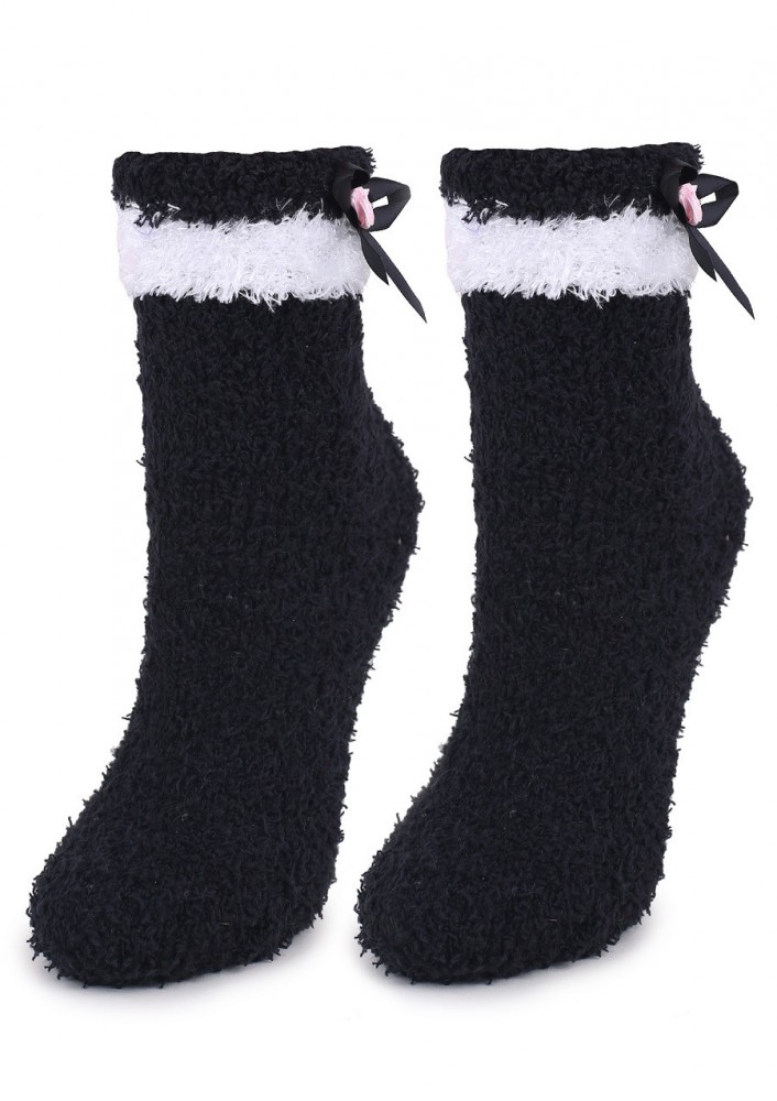 Marilyn COOZY N58 Махрові шкарпетки з білою облямівкою та бантиком чорний
